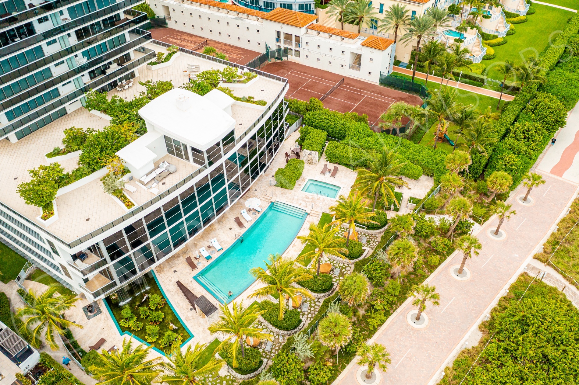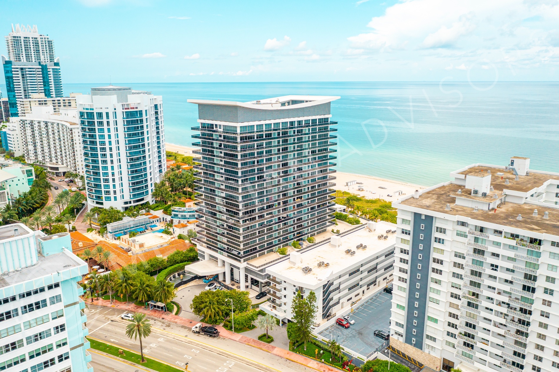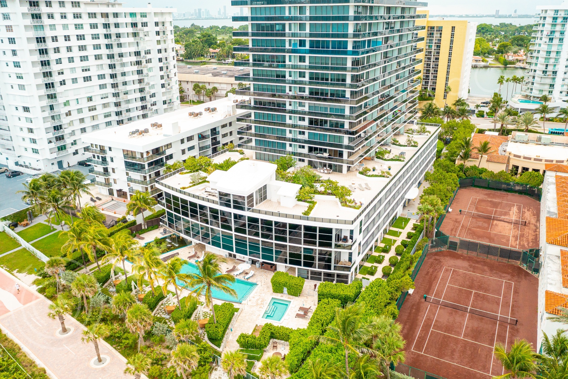 MEi is the Mandarin Chinese word for beauty and femininity. This Asian-inspired building represents those qualities in a charming and intimate package. Constructed in 23008, the 22 story tower contains 135 residences with a range of one, two, or three-bedroom floor plans, as well as six two-story townhouses. Many of the units have oversized terraces, for spectacular outdoor entertaining. Residents have the ocean at their feet, as well as views additional views of the Miami Beach skyline and Indian Creek. Developed by PMG Collins (a subsidiary of Property Markets Group), the building was designed by RBL Architecture, with interiors and common spaces created by Hirsch Bedner Interior Designers.