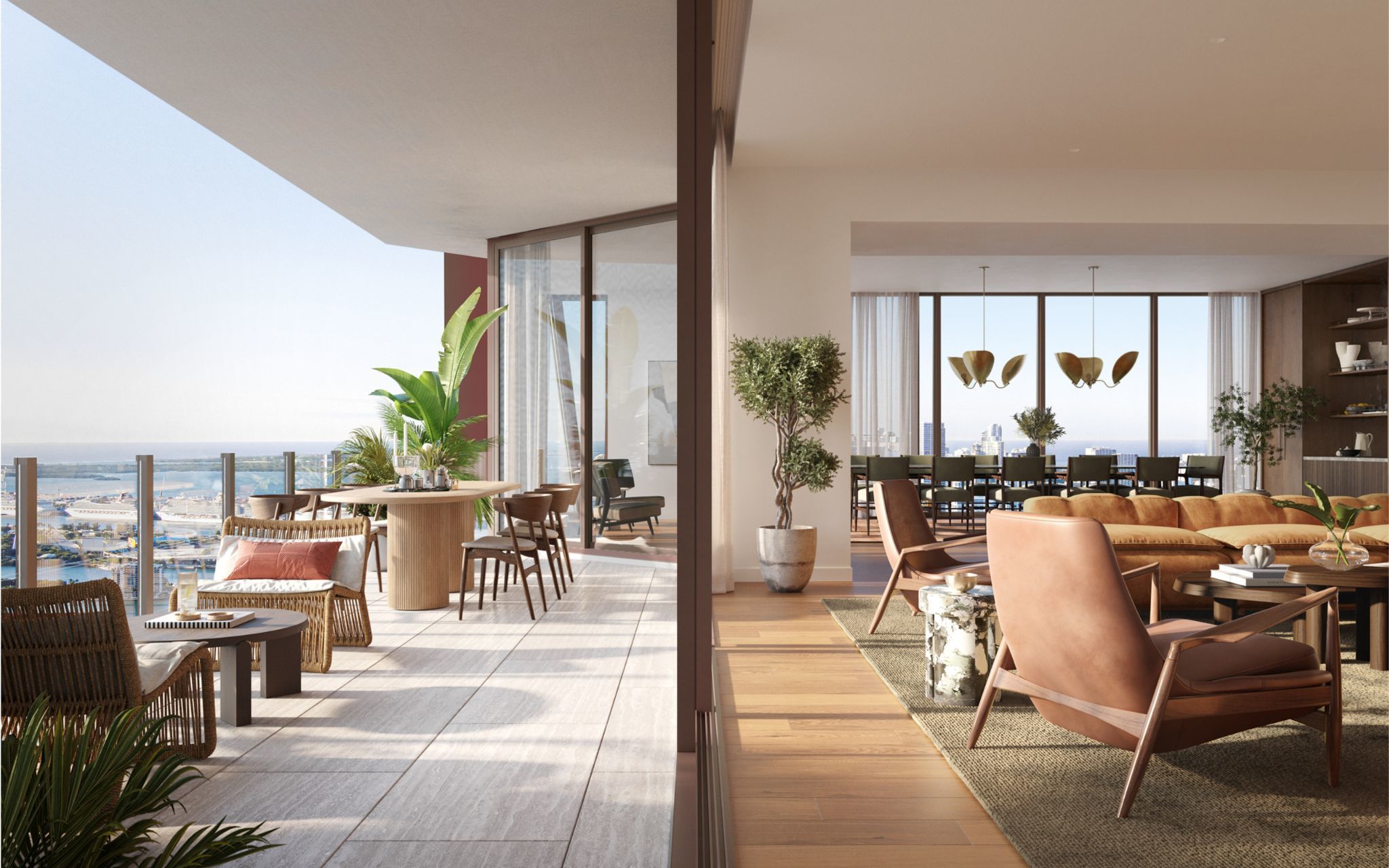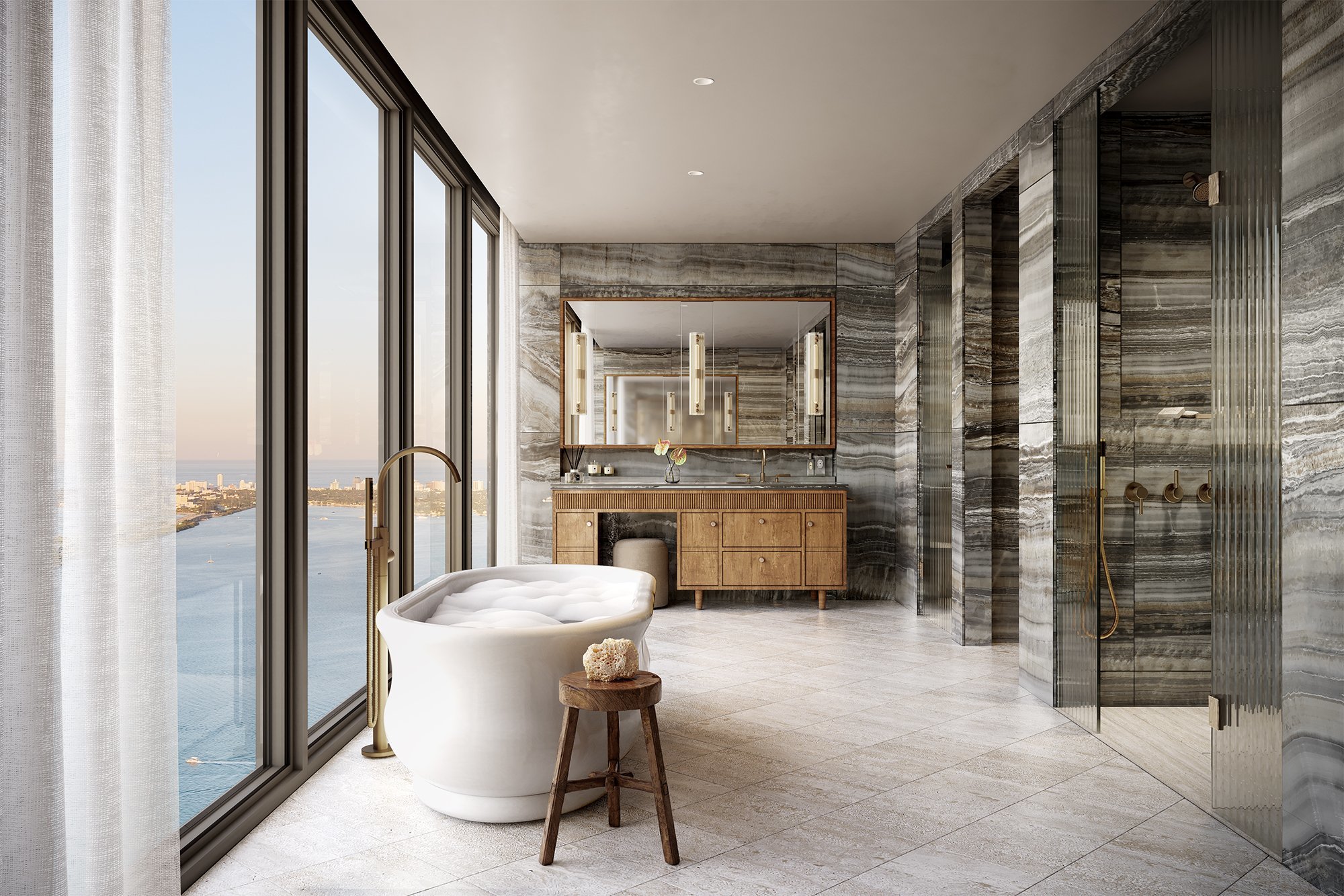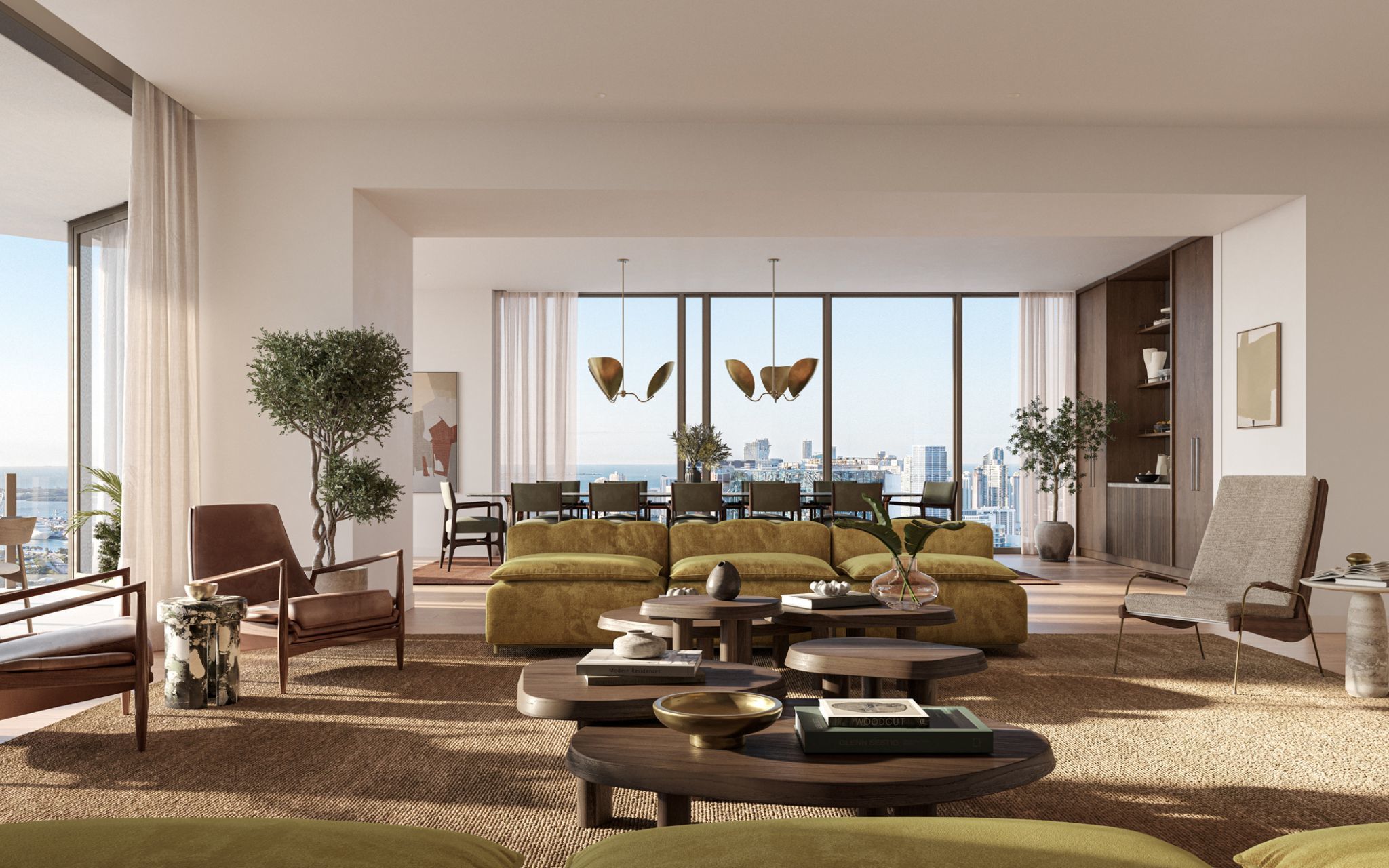 Villa Miami offers a range of meticulously designed residential units, featuring an array of half-floor or full-floor units. The living spaces are thoughtfully designed with an open concept layout, allowing for seamless interior flow and maximizing natural light in each residence. Units come with the option to choose from a couple of different layouts. Prospective residents can choose whether the primary bedroom faces East towards Biscayne Bay, or West towards the rest of the city. In addition, the floorplans can be modifed to include additional bedroom spaces or the choice of a larger primary suite.